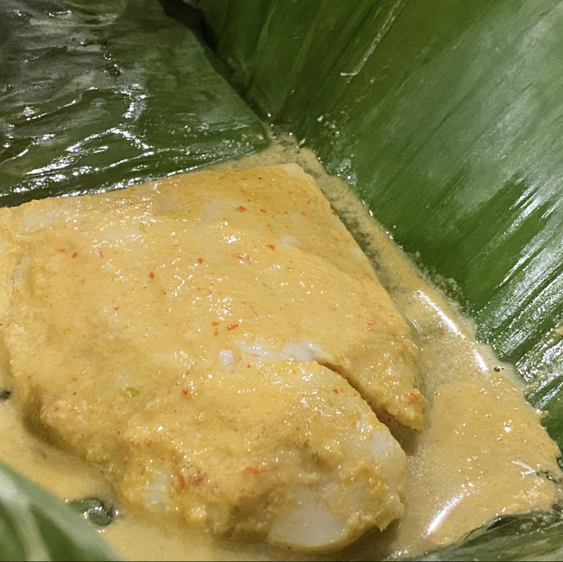 - Carefully unwrap the banana leaf and using a slotted spatula take out the fish and place in your serving plate.