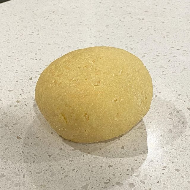 - When the mixture feels more like a dough and is too thick to mix with a fork, use your hand to knead and bring together to form a ball. A bench scraper comes in really handy at times like this.