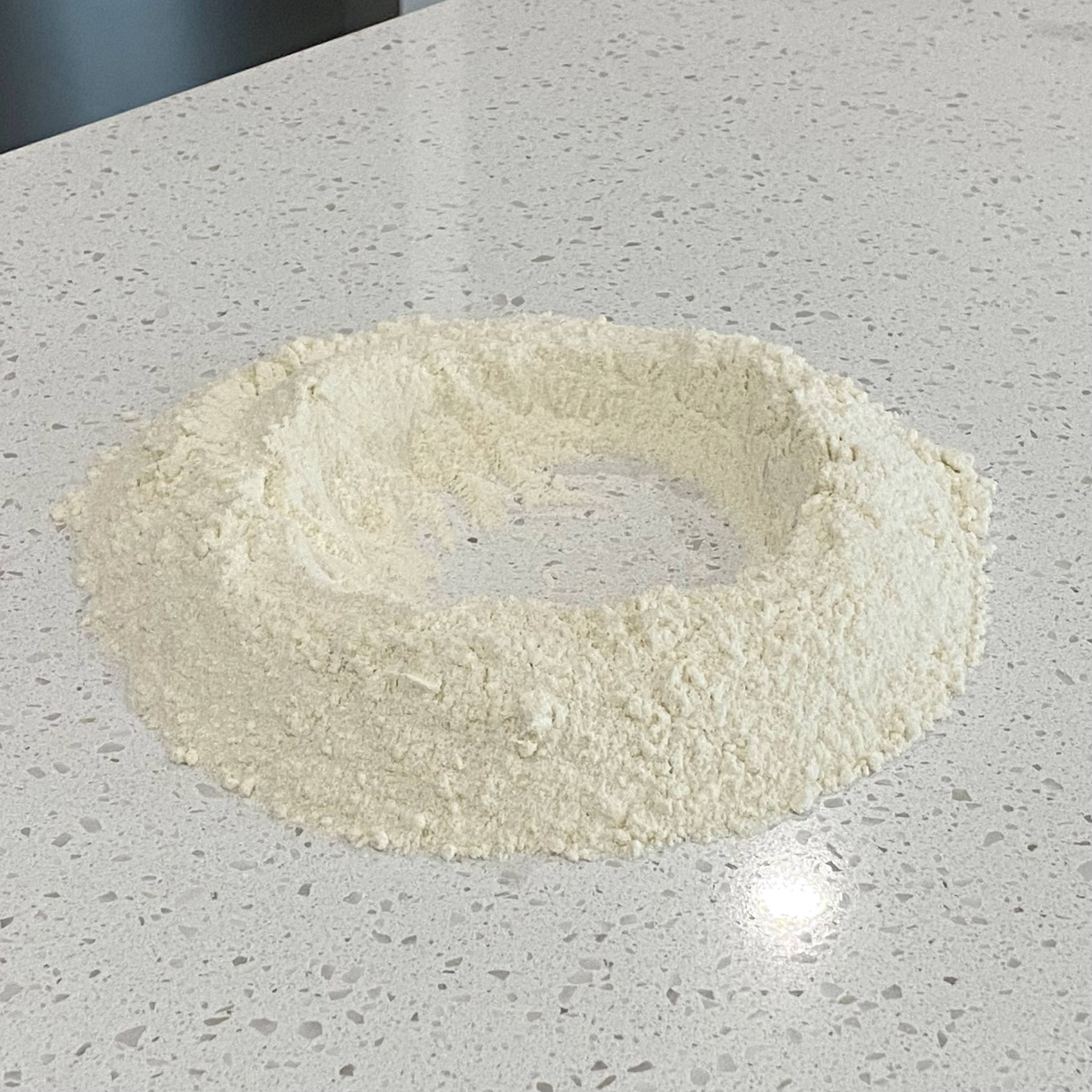 - Mix the dry ingredients. Place on a cleaned surface (I just put it on the countertop).