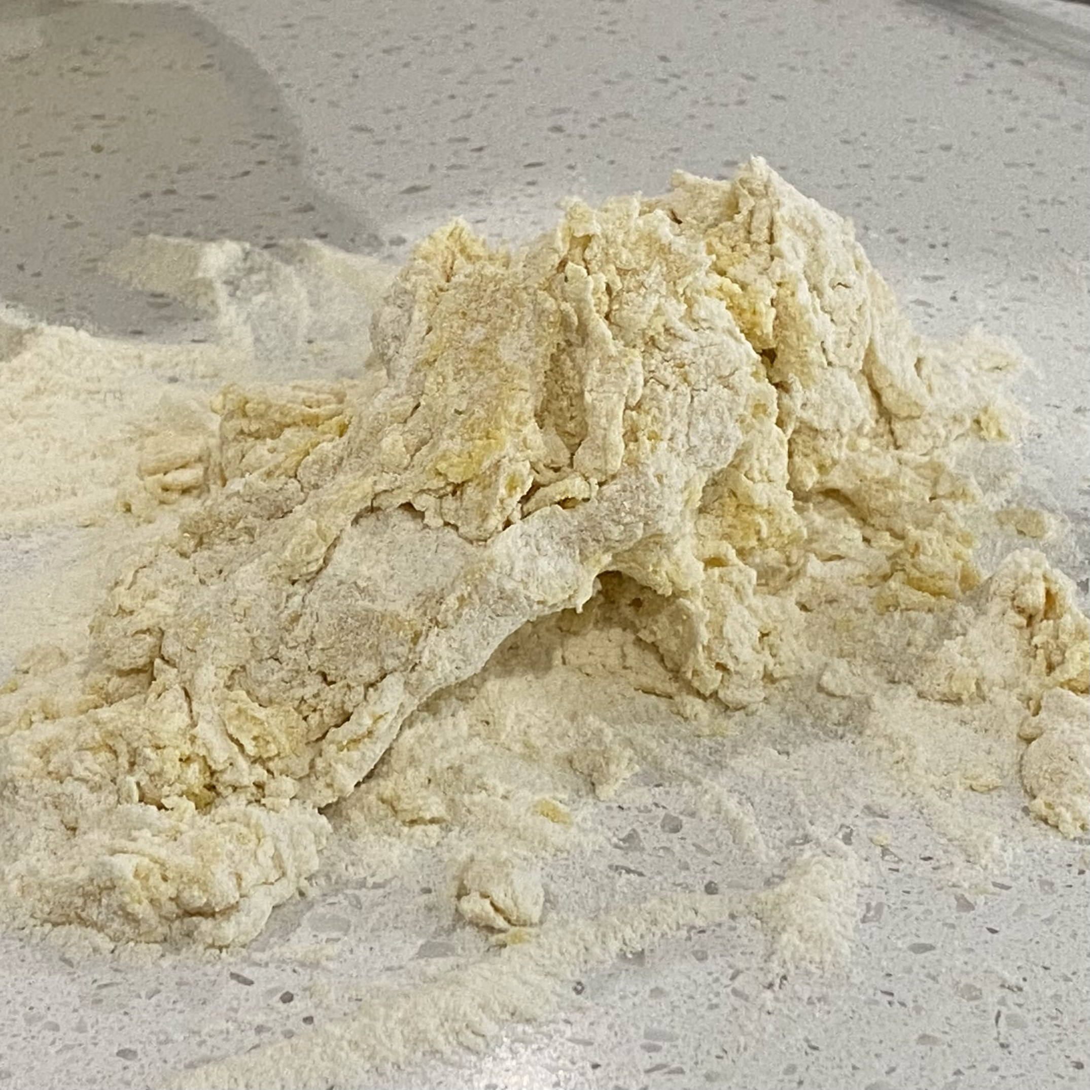- Sprinkle the surface (countertop in my case) with flour.