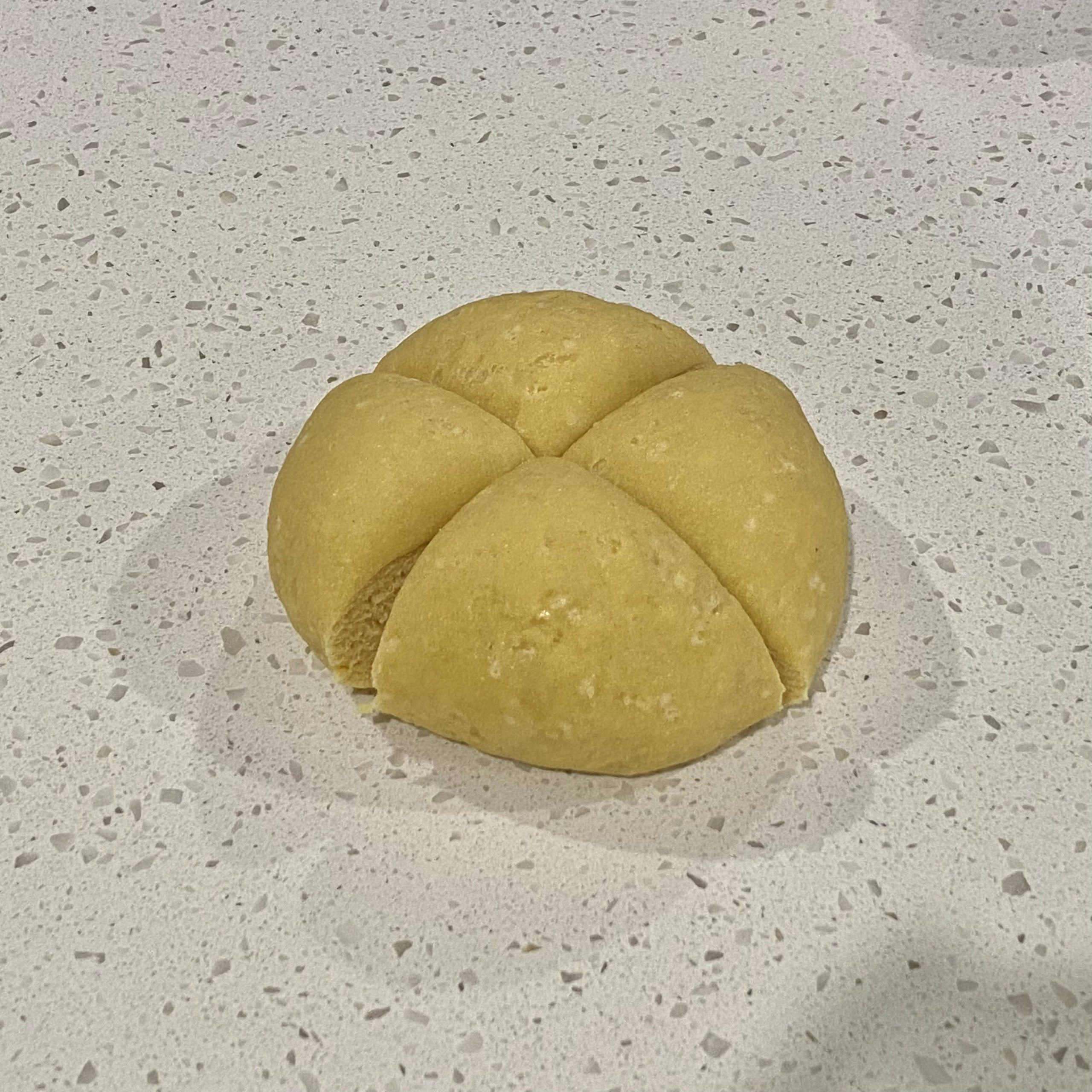 - Use a knife (or the bench scraper) to cut the dough into quarters (like a pie).