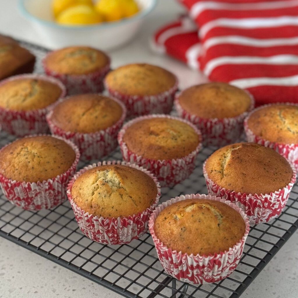 Zesty lemon poppy seed muffins with a moist crumb, perfect for a sunny start or a sweet afternoon snack.
