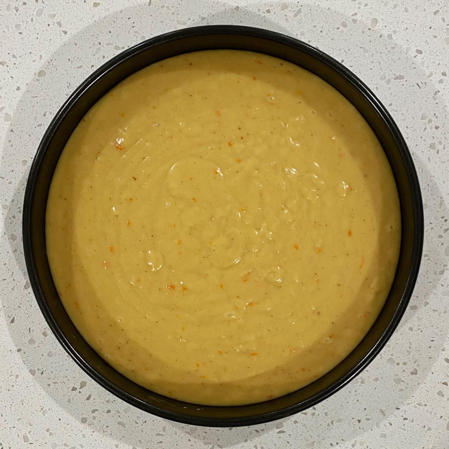 • Pour into a prepared 9” cake pan and bake for 40 minutes or until a toothpick inserted into the middle comes out clean.