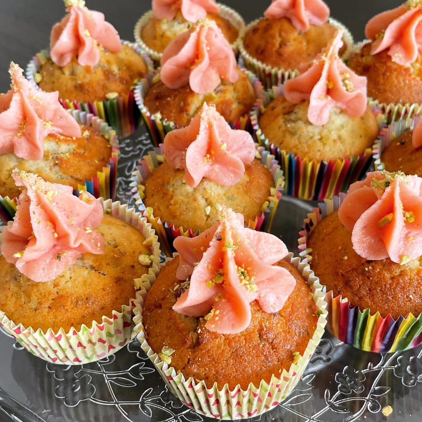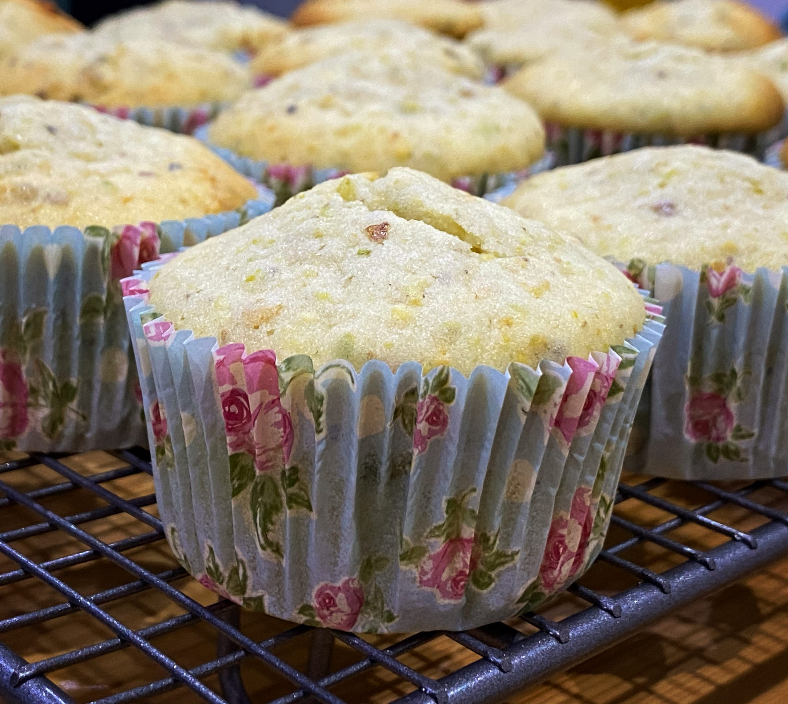- To the flour mix add baking powder, baking soda, salt, and 3/4 cup of pistachio crumbs together.