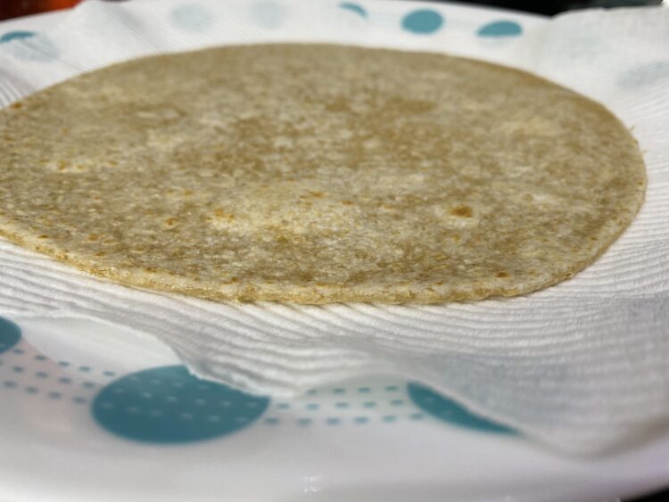• Place the roti in the pan. Cook on both sides until the roti is cooked through. You don’t need to add oil when cooking the roti. If making in bulk (to quickly finish off later or freeze), I like to half-cook the rotis.