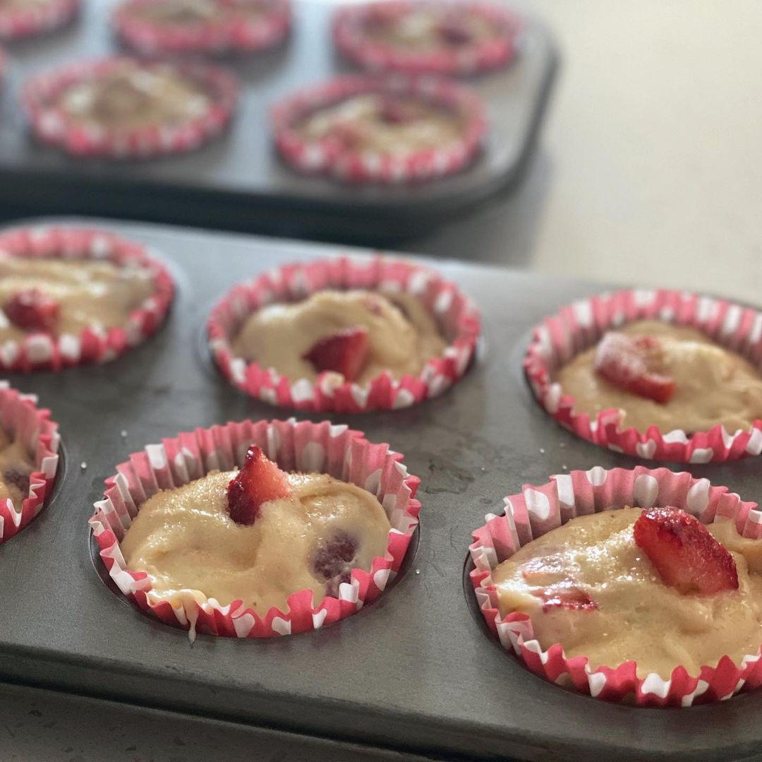 - Divide batter between each muffin cup, filling all the way to the top. Sprinkle with coarse sugar (for added crunch).